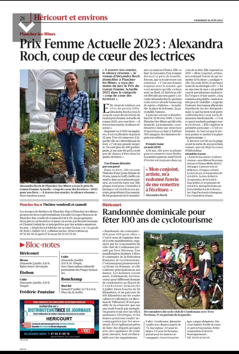 Interview d'Alexandra Roch le 27 juin 2023, par France Bleu Belfort Montbéliard et Alexandra Mehn.